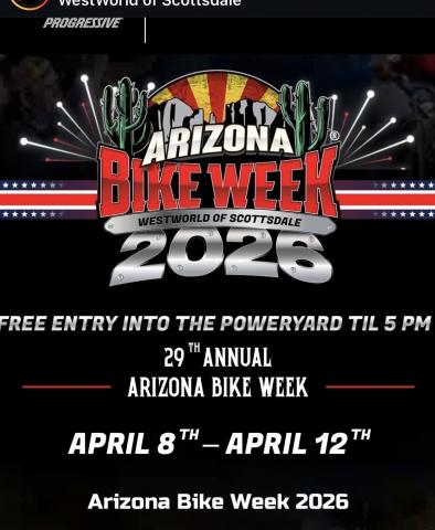 We are heading to Arizona bike week!! This is gonna be epic!! Ted Nugget is playing Saturday night if you want to buy a ticket. There are venders,a chopper show, on Sunday morning there is a swap meet, This also counts as a Harley Rally, we need 10 people to check in at this event. so even if you dont go with the Chaperone please look for the HD tent and check in mentioning our Chapter. We are aiming for Chrome status this year!!!